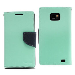 Suojaa Samsung Galaxy S2 älypuhelin tyylikkäällä korttipaikallisella syaanin värisellä Fancy lompakko suojakuorella.
