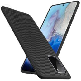 Puhelimenkuoret.fi verkkokaupasta tilaat mustan silikonista valmistetun taka suojakuoren, jolla suojaat Samsung Galaxy S20 5G puhelimen tehokkaasti.
