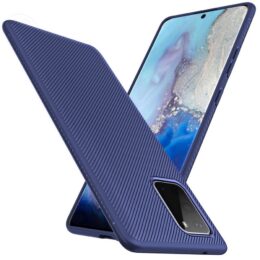Suojaa Samsung Galaxy S20 5G älypuhelin tehokkaasti kolhuilta, naarmuilta ja putoamisilta sinisellä silikonista valmistetulla suojakuorella.