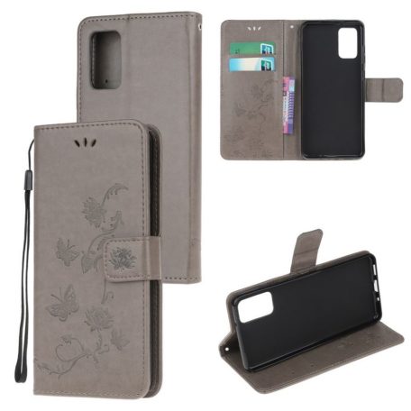 Hillityn harmaaseen koteloon on kuvioitu tyylikkäästi perhosia ja kukkia luomaan ilmettä. Käytännöllinen suoja Samsung Galaxy S20 FE puhelimelle.