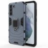 Metallinsinisen sävyinen takakuori, jota voi käyttää monipuolisesti ja suojata Samsung Galaxy S21 FE 5G puhelimen särkymiseltä.