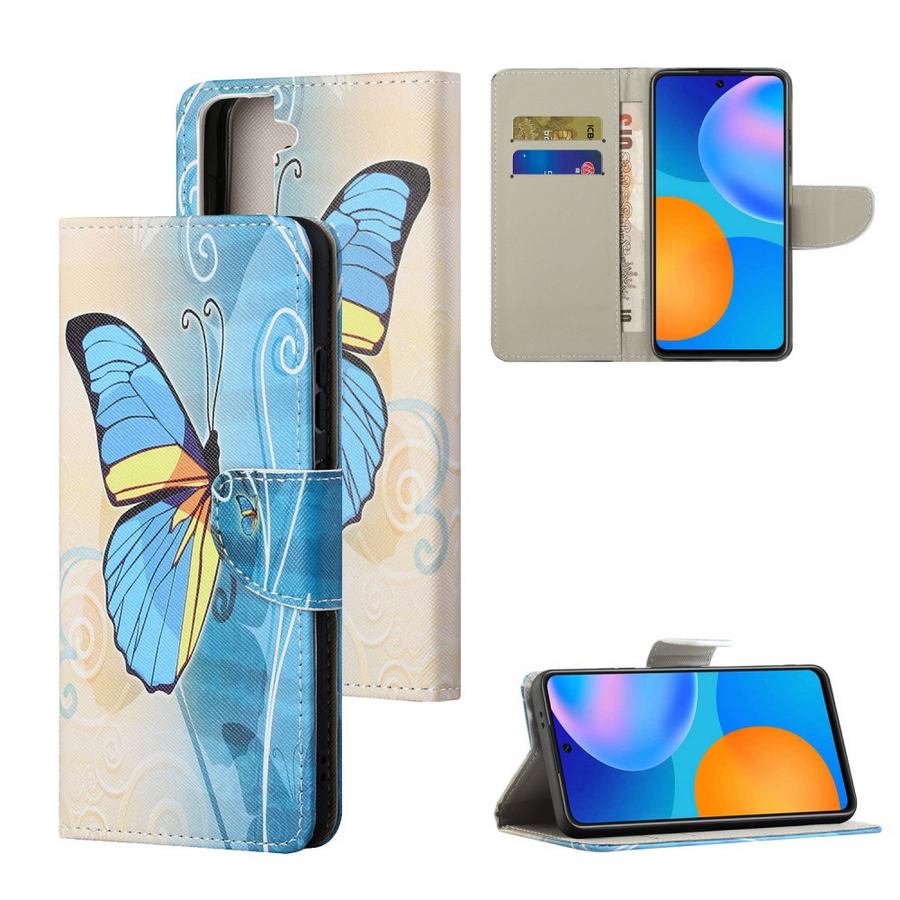 Hillityillä värisävyillä perhoskuvioitu sievä kotelo, antaa suojan rikkoutumiselta ja sopii Samsung Galaxy S21 FE 5G puhelinmallille.