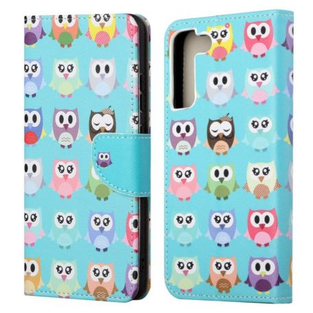 Leikkisä ja värikäs ulkoasu veikeillä pöllöhahmoilla, lompakkokotelo suojaamaan Samsung Galaxy S22 5G puhelinta vaurioilta.