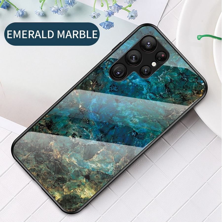 Samsung Galaxy S23 Ultra 5G -puhelimen takakuori, kauniin sinisen ja vihreän sävyinen marmorikuvioinen suoja.