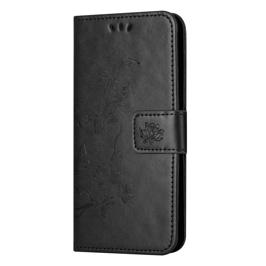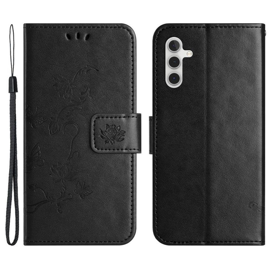 Elegantin mustan kotelon koristelu on tehty tyylikkäästi painetuilla perhosilla ja kukkasilla, pätevä suoja Samsung Galaxy S24 5G puhelinmallille.