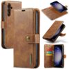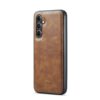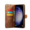 Lompakkomallin ja takakuoren toimivia ominaisuuksia yhdistävä tyylikkään ruskea kotelo suojaksi Samsung Galaxy S24 FE 5G puhelimelle.