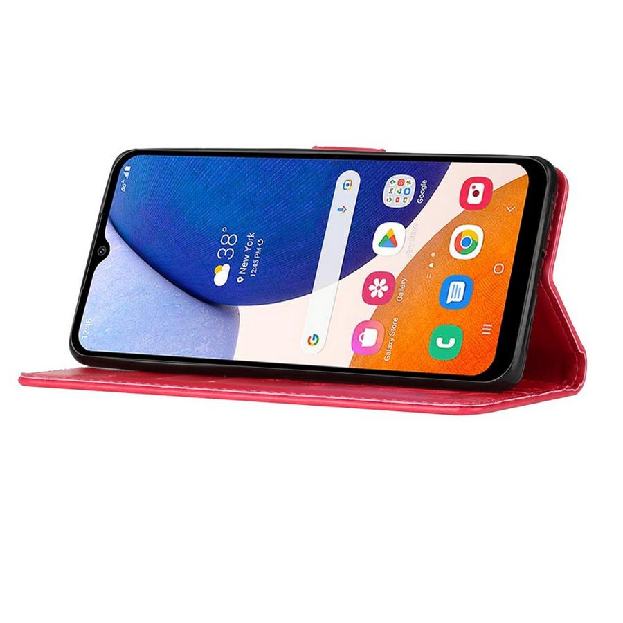 Jalusta-asentoon taittuva lompakko on näppärä apu näytön katselun tarpeisiin ja kuvaaminen mahdollistuu, sillä takapinnalla on kamera-aukko.