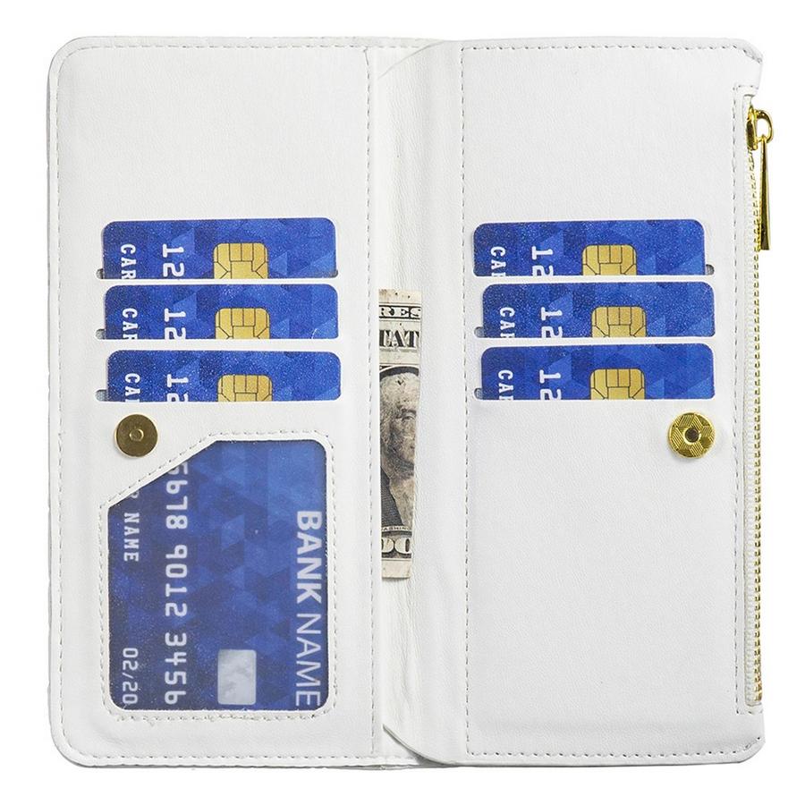 Leveä setelitasku, vetoketjullinen tasku sekä peräti yhdeksän paikkaa maksu- ja henkilökorteille.