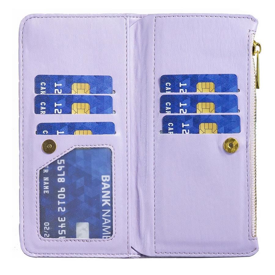 Harmonisen kaunis, vaaleasävyisen violetti lompakko suojaa Samsung Galaxy S24 FE 5G puhelinta ja sisältää erinomaisesti tilaa maksuvälineille.