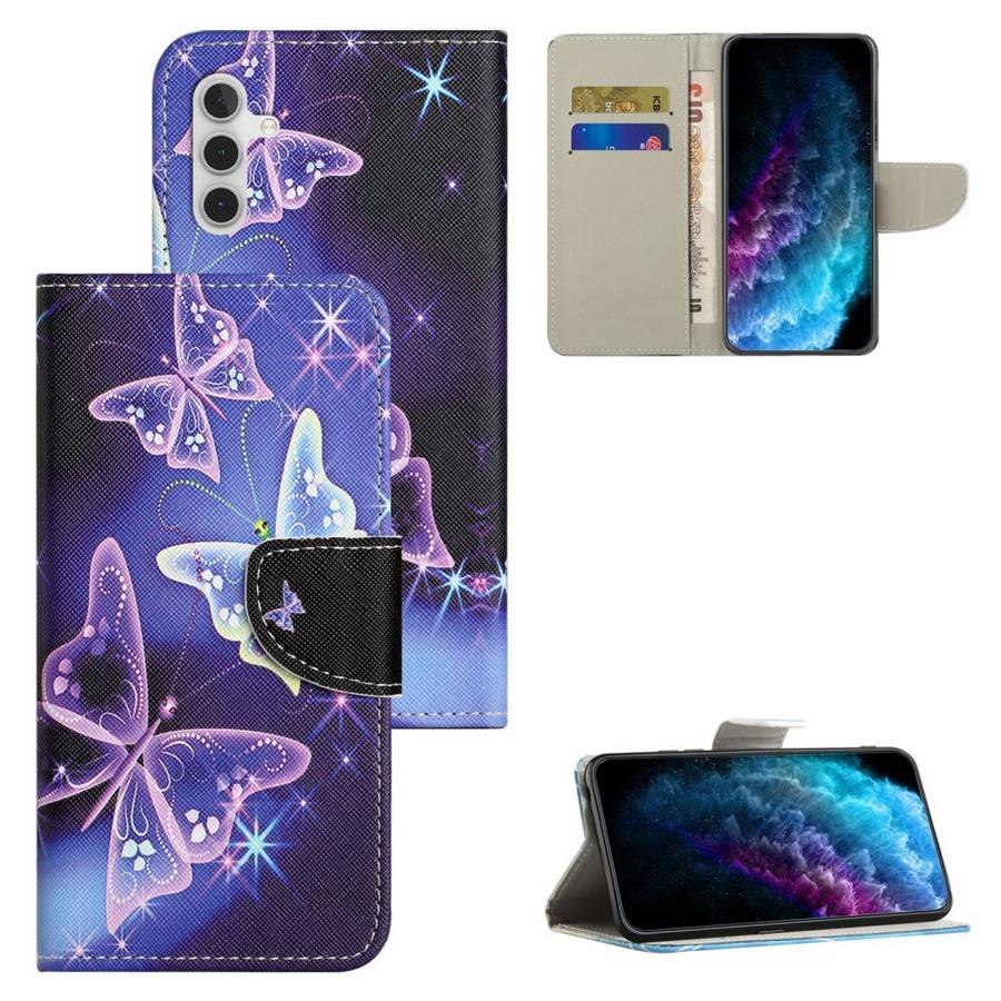 Herkän kauniilla perhosilla kuvioitu yötaivaan tumma kotelo, jonka suojassa Samsung Galaxy S24 FE 5G puhelin on turvattu kolahduksilta ja osumilta.