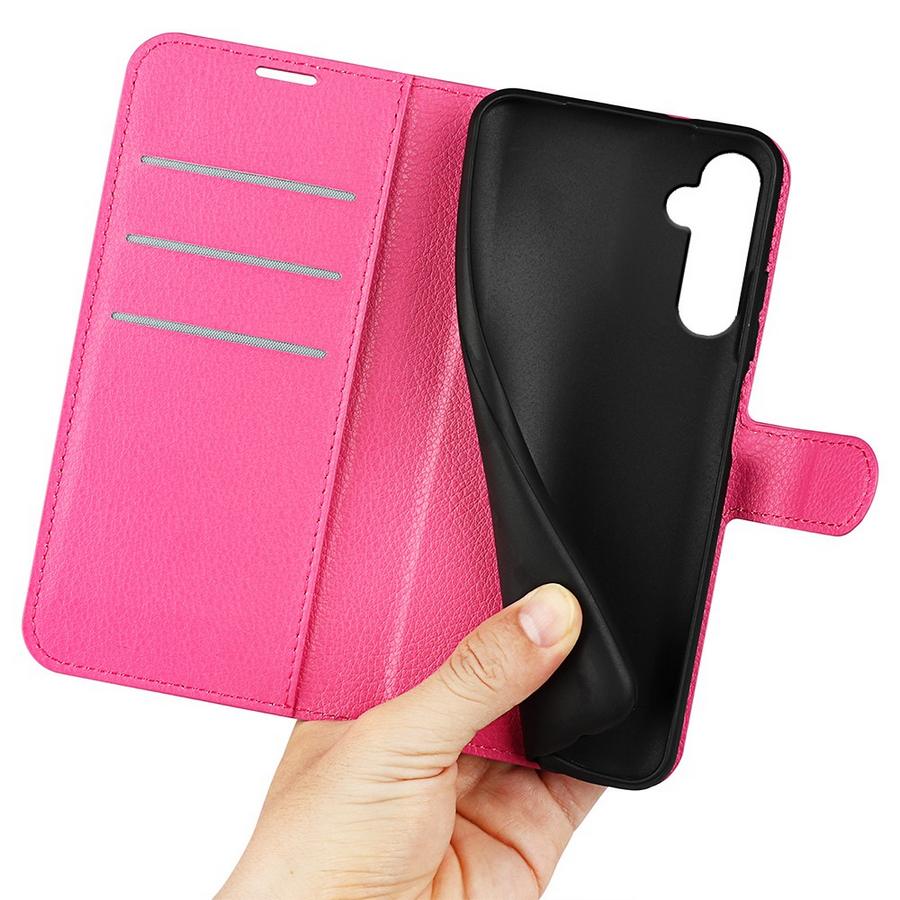 Pirteää pinkkiä väriä Samsung Galaxy S24+ 5G puhelimelle, kauttaaltaan suojaava lompakkomallinen kotelo estämään vahingot.