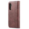 Samsung Galaxy S25 5G puhelimelle vahva ja väriltään elegantti viininpunainen kotelo yhdistää takakuoren ja lompakkomallin parhaat puolet.