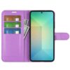 Violetin värinen, kaunis ja käytännöllinen lompakkokotelo Samsung Galaxy S25 5G puhelinta varten, antamaan suojan osumilta ja naarmuuntumiselta.