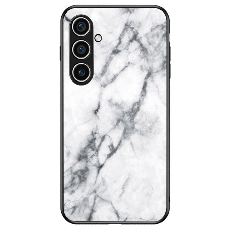 Samsung Galaxy S25+ 5G puhelinta suojaava takakuori ylellisen kauniilla, valkeapohjaisella ja marmorikuvioidulla pinnalla.