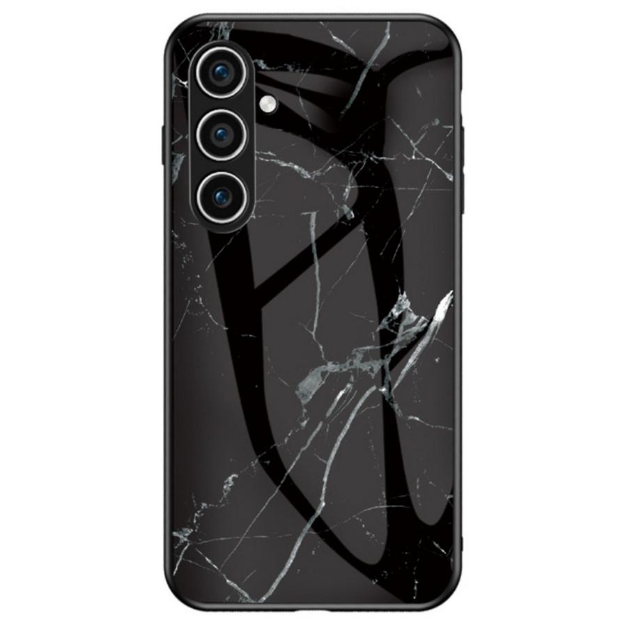 Todella tyylikkään näköinen, tummapintainen ja valkeiden marmorikuvioiden halkoma takakuori Samsung Galaxy S25 5G puhelimen turvaksi.