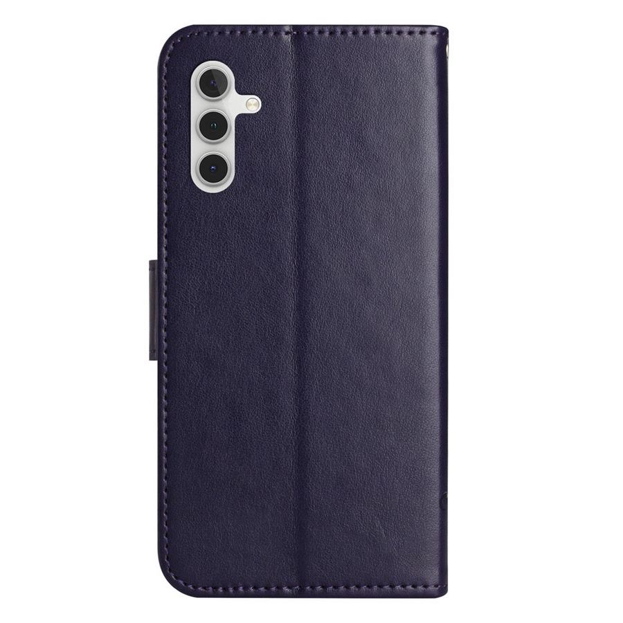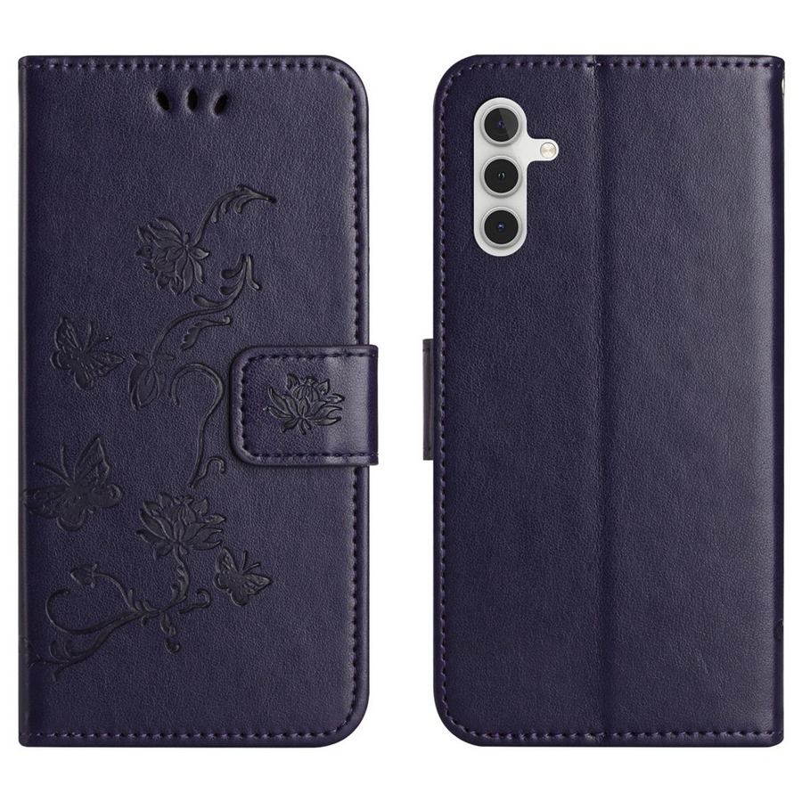 Kansien tummasävyisen violetille pohjalle on tehty kuviointi kauniisti painamalla, ihana suojakotelo Samsung Galaxy S25 FE 5G puhelinmallille.