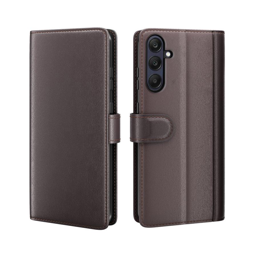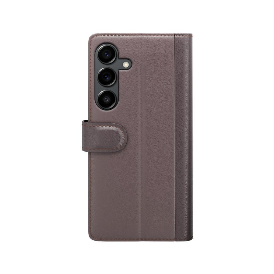 Tyylikkään kahvinruskealla ja klassisen mallisella nahkakotelolla suojaat tehokkaasti Samsung Galaxy S25 FE 5G -älypuhelimen vaurioilta ja naarmuuntumiselta.