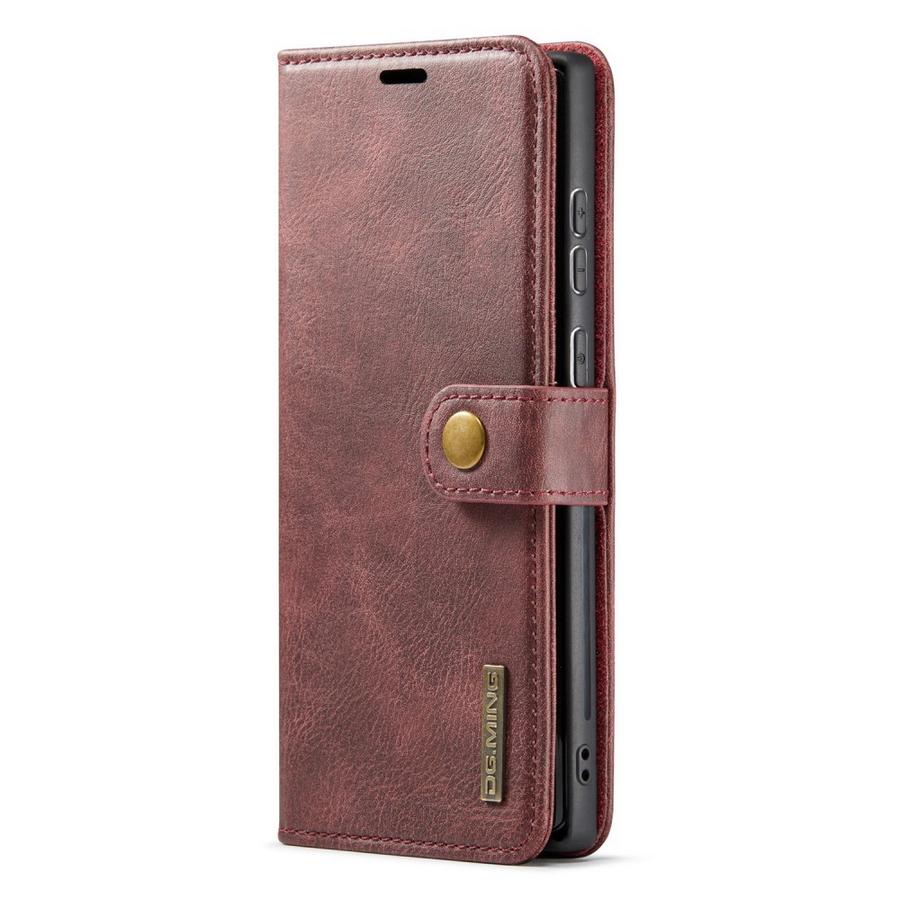 Samsung Galaxy S25 Ultra 5G puhelimelle vahva ja väriltään elegantti viininpunainen kotelo yhdistää takakuoren ja lompakkomallin parhaat puolet.