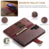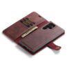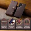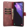 Samsung Galaxy S25 Ultra 5G puhelimelle vahva ja väriltään elegantti viininpunainen kotelo yhdistää takakuoren ja lompakkomallin parhaat puolet.