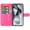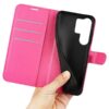 Samsung Galaxy S25 Ultra 5G puhelinmallille särkymiseltä ja naarmuuntumiselta suojaava lompakkokotelo pirteissä pinkin värisissä kansissa.