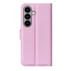 Lompakkokotelo soman vaaleanpunaisin kansin, Samsung Galaxy S26 5G -puhelimelle käytännöllinen ja napakka rikkoutumisen suoja.