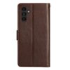 Samsung Galaxy S26 5G -puhelimelle sopiva, pehmeän ruskean sävyinen lompakkokotelo on käytännöllinen ja kattava vahingoittumisen suoja.