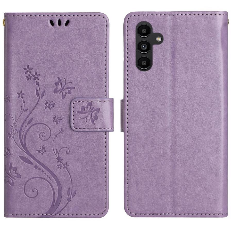 Kukkaköynnöksellä ja perhosilla somistettu vaaleasävyisen violetti kotelo on kattava vahingoittumisen suoja Samsung Galaxy S26 5G puhelinmallille.