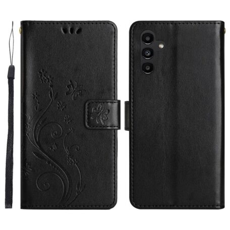 Ihanasti perhosin ja kukkasin painokuvioitu, kullankiiltävä lompakkokotelo Samsung Galaxy S26+ 5G puhelinmallia suojaamaan.