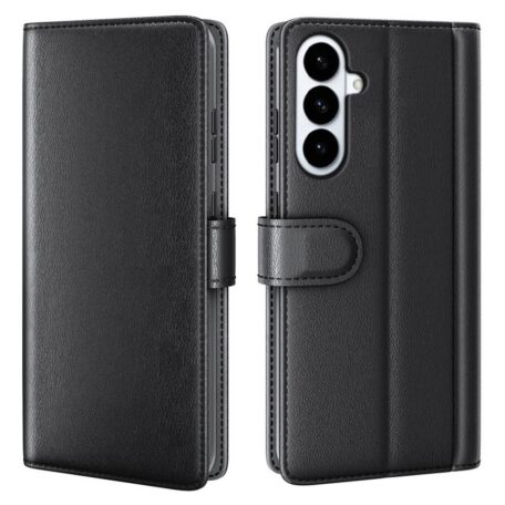 Ajattoman musta nahkakotelo on tyylikäs, laadukas ja erittäin tehokas suoja Samsung Galaxy S26+ 5G -puhelimen jokaiselle pinnalle.