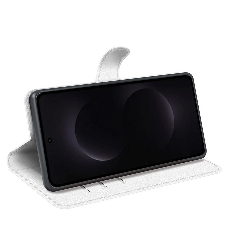 Ihastuttavasti valkoiseen puettu ja malliltaan käytännöllinen lompakkokotelo on Samsung Galaxy S26 Ultra 5G -puhelimen turva vahingoilta.
