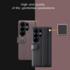 Kahvinruskea nahkakotelo on vahva suoja Samsung Galaxy S26 Ultra 5G -puhelimelle, jotta se säilyy turvassa kolahduksilta ja iskuilta.