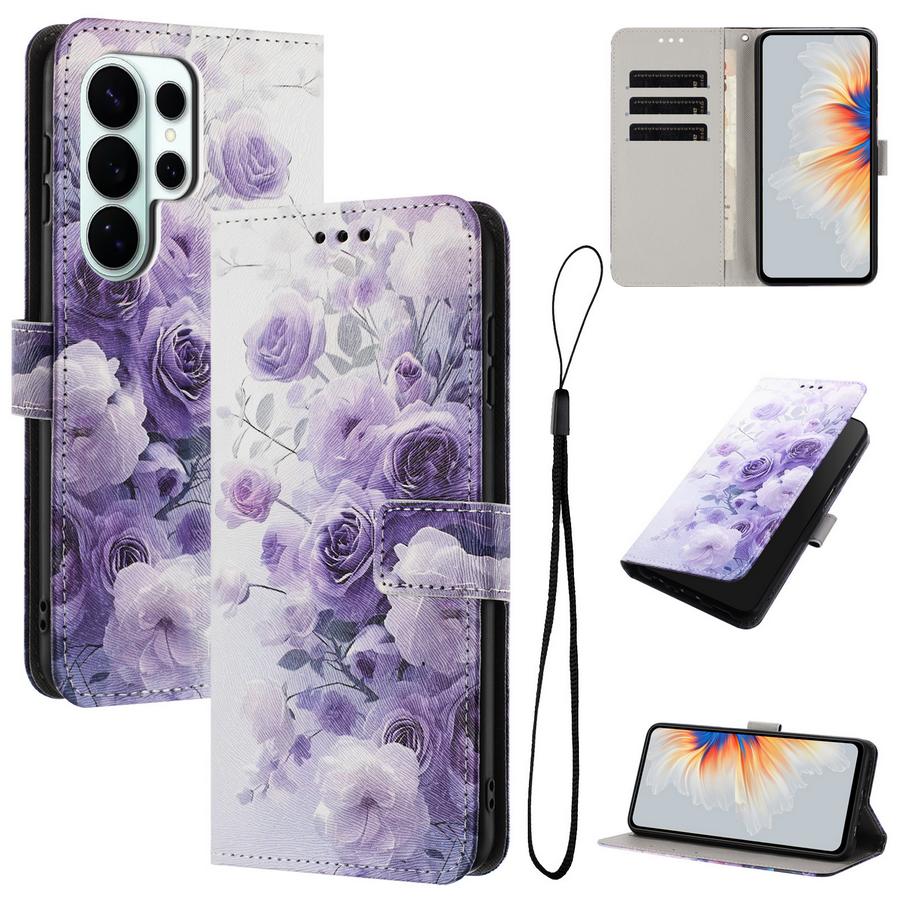 Hempeä ja romanttinen ruusukuviointi vaaleassa violetin sävyissä, ihana kotelo jolla suojata Samsung Galaxy S26 Ultra 5G puhelin vaurioitumiselta.