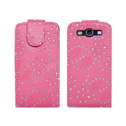 Samsung Galaxy S3 Pinkki Timantti Läppäkotelo. Upea pystysuunnassa avautuva läppä kotelo Samsung Galaxy S3 puhelimeen, jolla suojaat puhelimesi ja näytät tyylikkäältä.