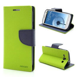 Tyylikäs vihreä Mercury Goospery Fancy Diary lompakkokotelo Samsung Galaxy S3 puhelimeen. Kotelon sisäosa on tummansininen.