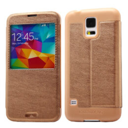 Tyylikäs ja laadukas ikkunallinen kahvinvärinen KLD KA kotelo Samsung Galaxy S5 älypuhelimeen.