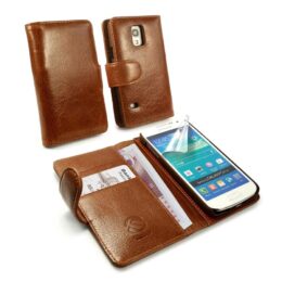 Aidosta nahasta valmistettu erittäin tyylikäs ruskea Tuff-Luv Vintage lompakkokotelo auttaa suojaamaan Samsung Galaxy S5 Mini puhelimesi.