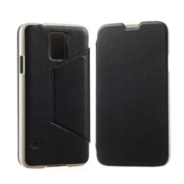 Suojaa Samsung Galaxy S5 älypuhelimesi tyylikkäällä ja laadukkaalla mustalla läpällisellä ikkuna suojakuorella.