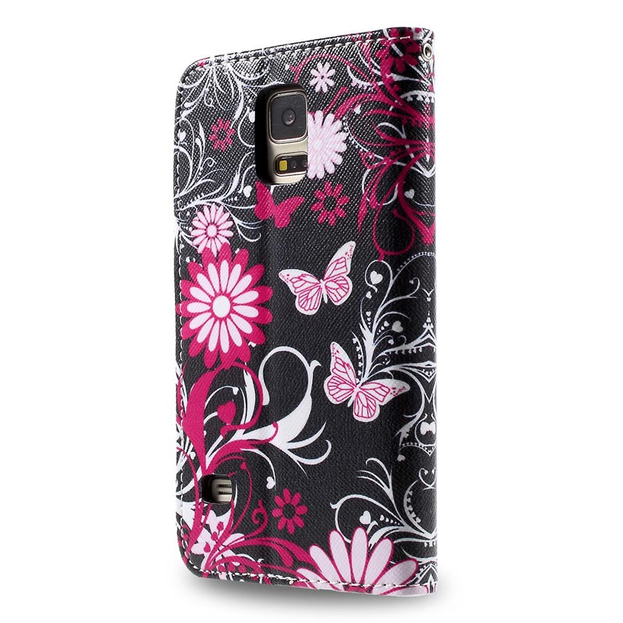 Suojaa Samsung Galaxy S5 puhelin kauniilla lompakkokotelolla, jossa on perhosia ja kukkia.