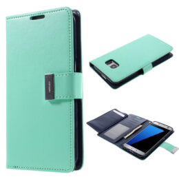 Puhelimenkuoret.fi verkkokaupasta tilaat tyylikkään syaanin värisen Goospery Rich Diary kotelon Samsung Galaxy S7 Edge puhelimeen.