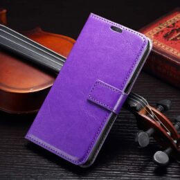 Samsung Galaxy S7 Edge puhelimeen sopivassa violetissa suojakotelossa on kolme korttipaikkaa, tasku ja jalusta-toiminto.