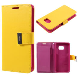 Suojaa Samsung Galaxy S7 kolhuilta keltaisella/pinkillä Goospery Rich Diary lompakkokotelolla.