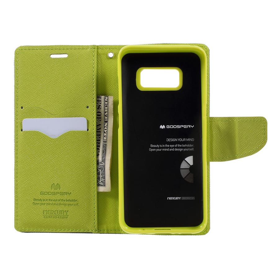 Sininen Goospery Fancy Diary kotelo auttaa suojaamaan Samsung Galaxy S8 älypuhelintasi kolhuilta ja putoamisilta.