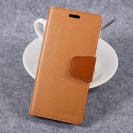 Goospery Sonata Diary kotelossa on kolme korttipaikkaa, setelitasku, magneettisuljenta ja jalusta-toiminto. Hyvin suojaava kotelo on valmistettu keinonahasta ja sisäosa joustavasta TPU-muovista.