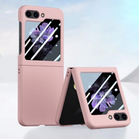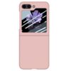 Sievä vaaleanpunainen kuori, jolla saat suojattua Samsung Galaxy Z Flip5 5G -älypuhelimen osumilta, iskuilta ja naarmujen syntymiseltä.
