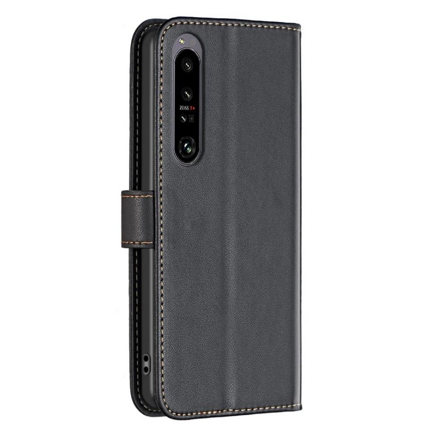 Lompakkomallinen mustakantinen kotelo, joka suojaa Sony Xperia 1 VI -älypuhelimen vahingoilta, jotka vaurioittavat puhelinta.