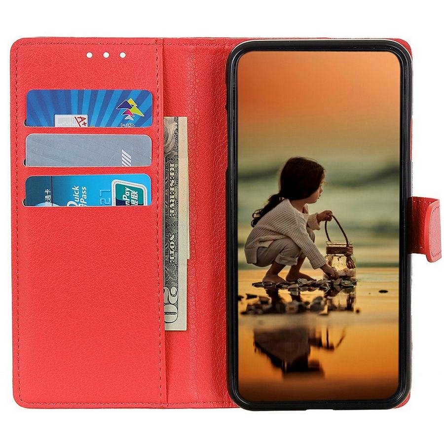 Kolme korttipaikkaa sekä setelitasku sijaitsevat etukannessa ja takakannen taitteet mahdollistavat jalusta-asennon näytön katseluun.