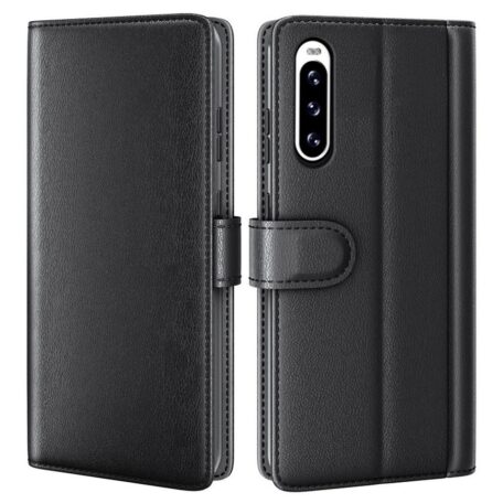 Sony Xperia 10 V -älypuhelimelle suunniteltu musta nahkakotelo tarjoaa laadukasta suojaa arjen vahingoilta ja naarmuuntumiselta.