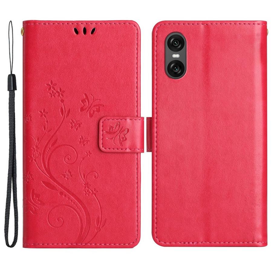 Pirteän väriset kannet somistettuna kukkasilla ja perhosilla, suojaava lompakkokotelo estämään Sony Xperia 10 VI puhelimen vaurioituminen.