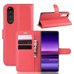 Suomalaisesta Puhelimenkuoret.fi verkkokaupasta ostat nopeasti ja edullisesti punaisen lompakkokotelon Sony Xperia 5 älypuhelimelle.