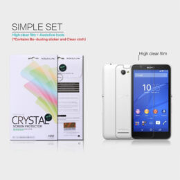 Suojaa Sony Xperia E4 puhelimen näyttö kirkkaalla Nillkin näytön suojakalvolla.